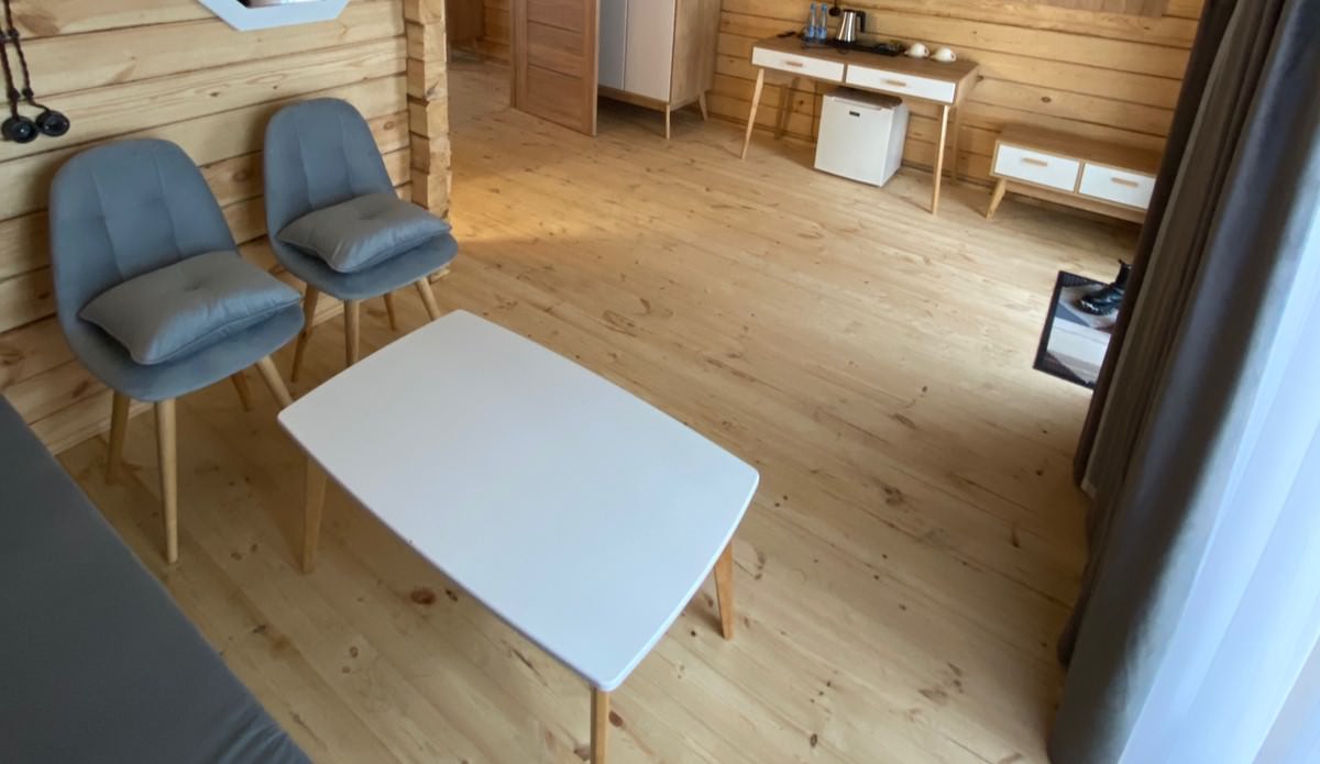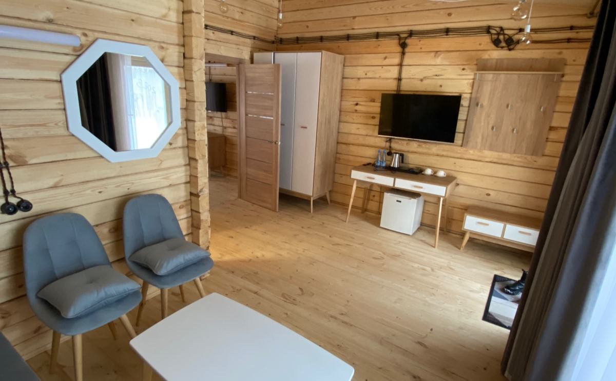 2 осн. места. 3 доп. места. Мебель: вешалка, диван раскладной, кровать двуспальная, стол, столик журнальный, стулья, шкаф. Оборудование: мини-холодильник, телевизор, чайный набор посуды, электрочайник. Санузел: с душевой кабиной, тапочки, туалетные принадлежности, фен, халат. Сервис: Wi-Fi бесплатно, смена полотенец, смена постельного белья, уборка номера.